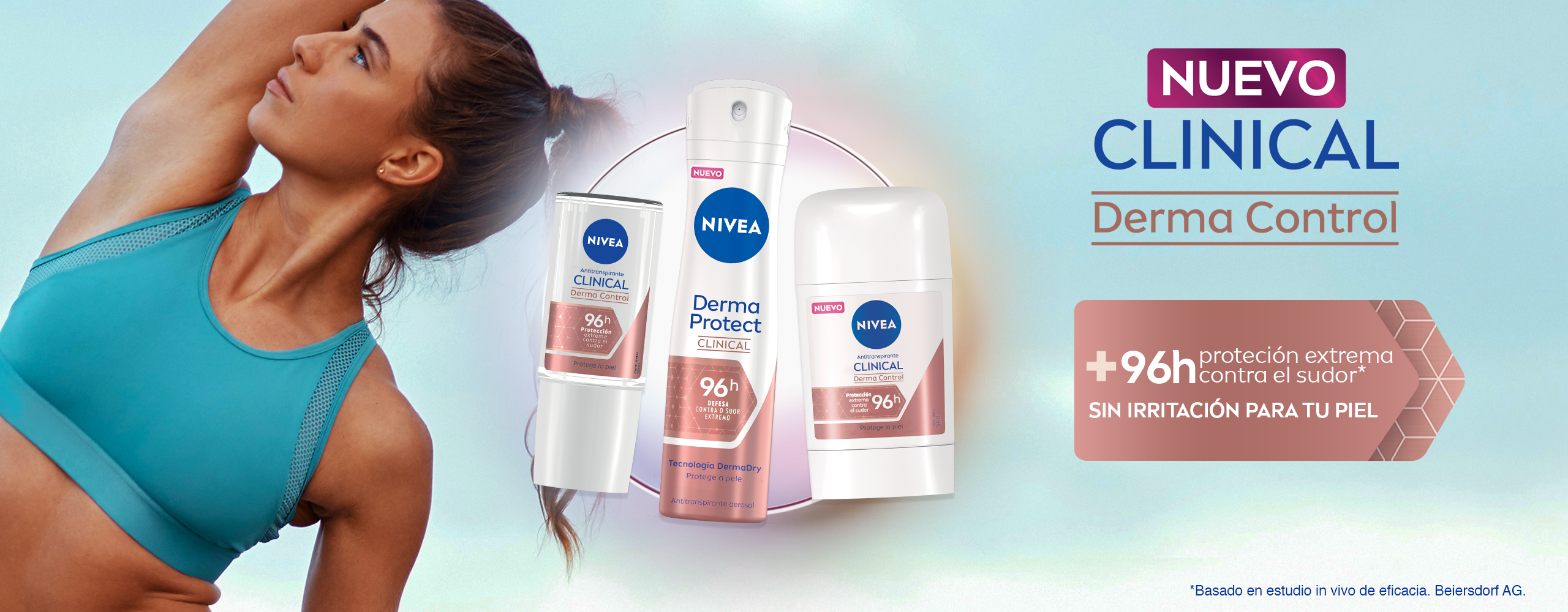 La fórmula del NUEVO Nivea Clinical Derma Control combina la protección y lo mejor del cuidado de la piel, creando una solución completa. Ofrece hasta 96 horas de defensa extrema contra el sudor y mal olor, protegiendo contra la humedad y el mal olor, sin preocuparte por la irritación.