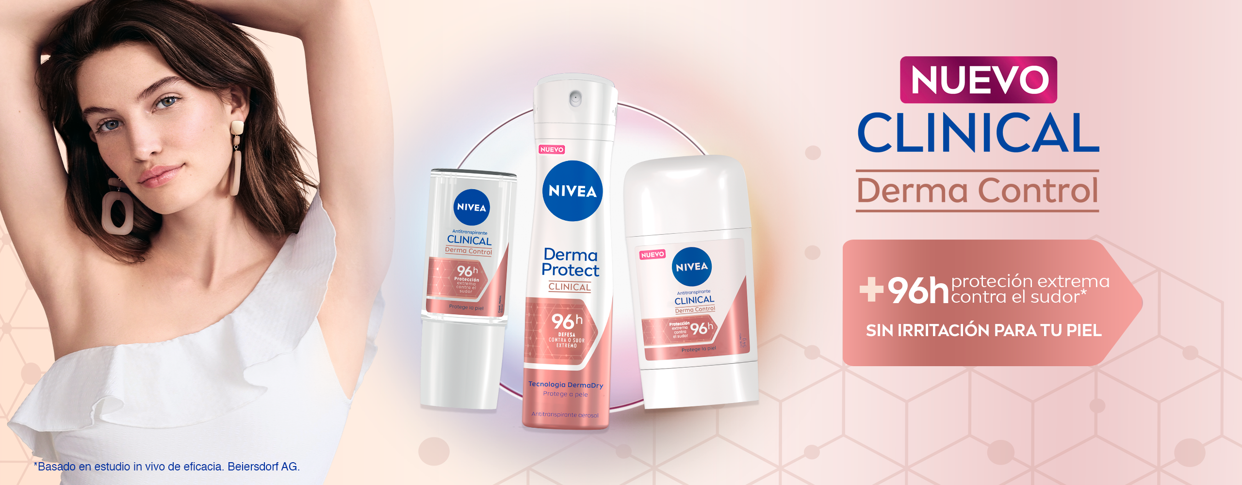 El NUEVO Nivea Clinical Derma Control combina la protección y lo mejor del cuidado de la piel, creando una solución completa. Ofrece hasta 96 horas de defensa extrema contra el sudor y mal olor, sin generar problemas de irritación.