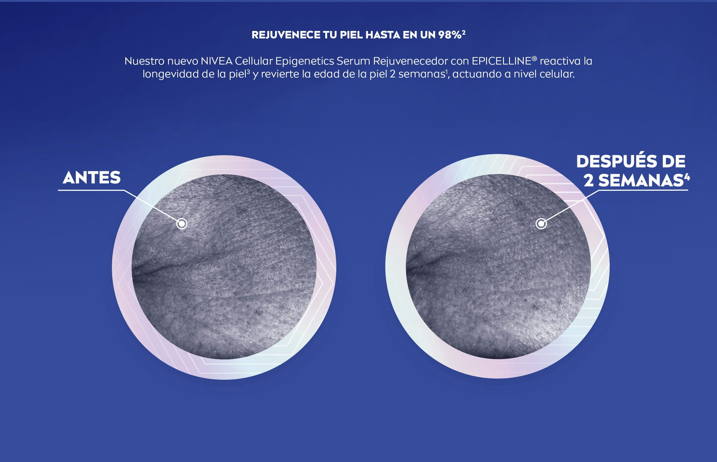 Tras 15 años de investigación en la ciencia epigenética y más de 50.000 moléculas testeadas, NIVEA logró un avance revolucionario en el cuidado anti-edad consu última innovación: EPICELLINE®, el ingrediente más potente capaz de revertir la edad de la piel1.