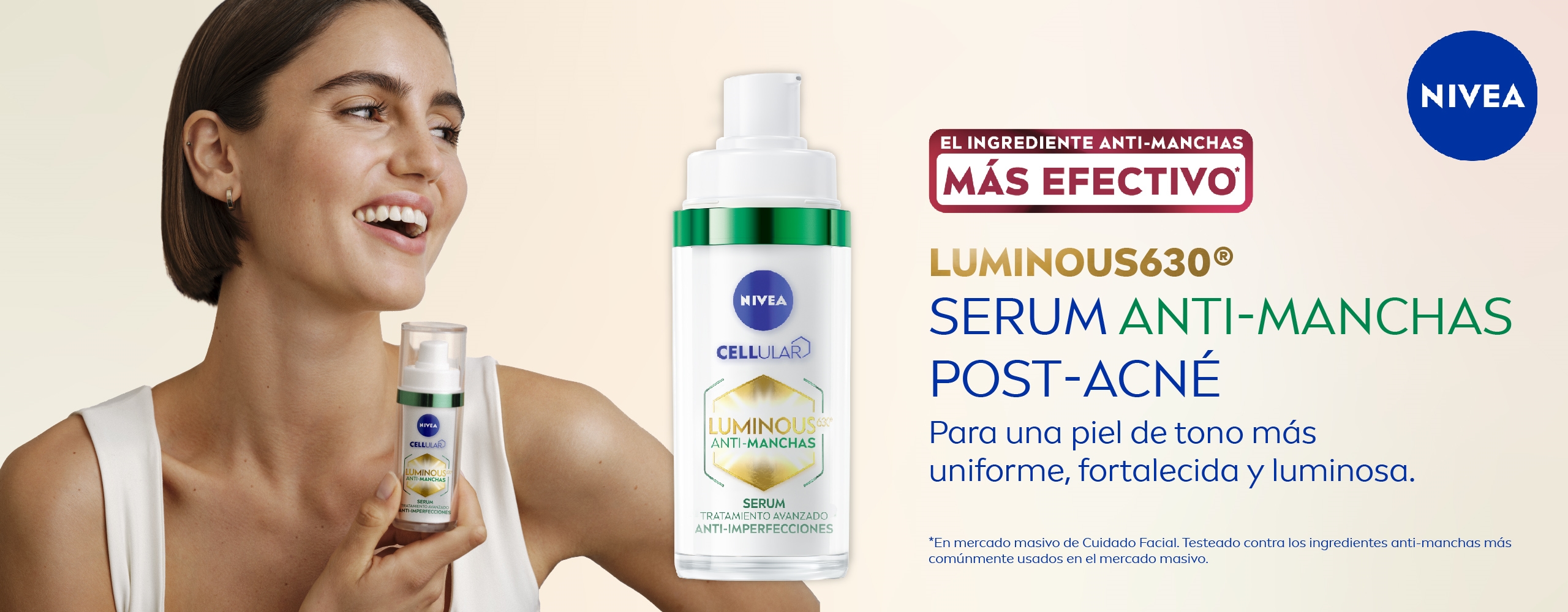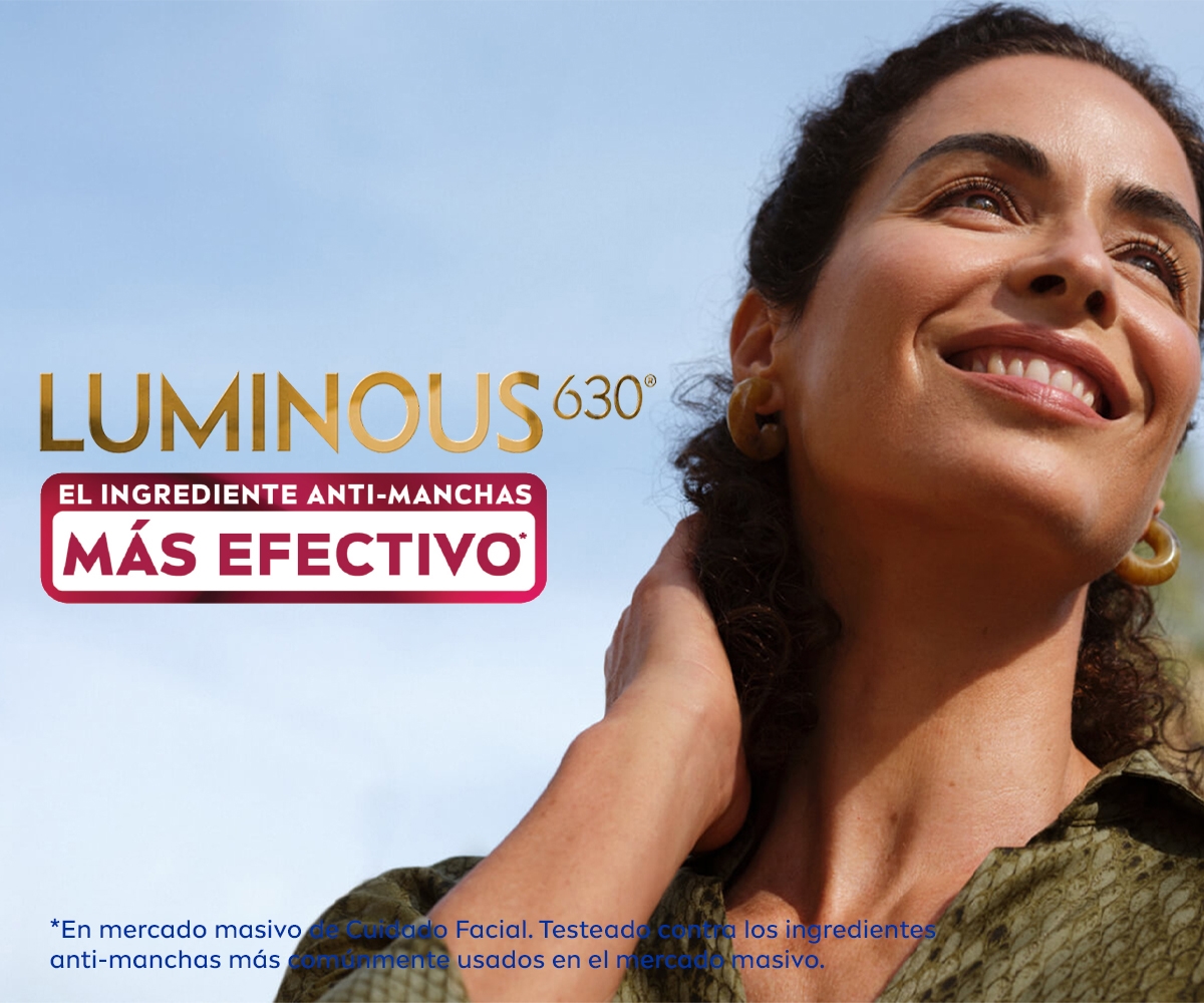 Esta poderosa fórmula está enriquecida con: Luminous630®: El ingrediente anti-manchas más efectivo* que reduce y aclara