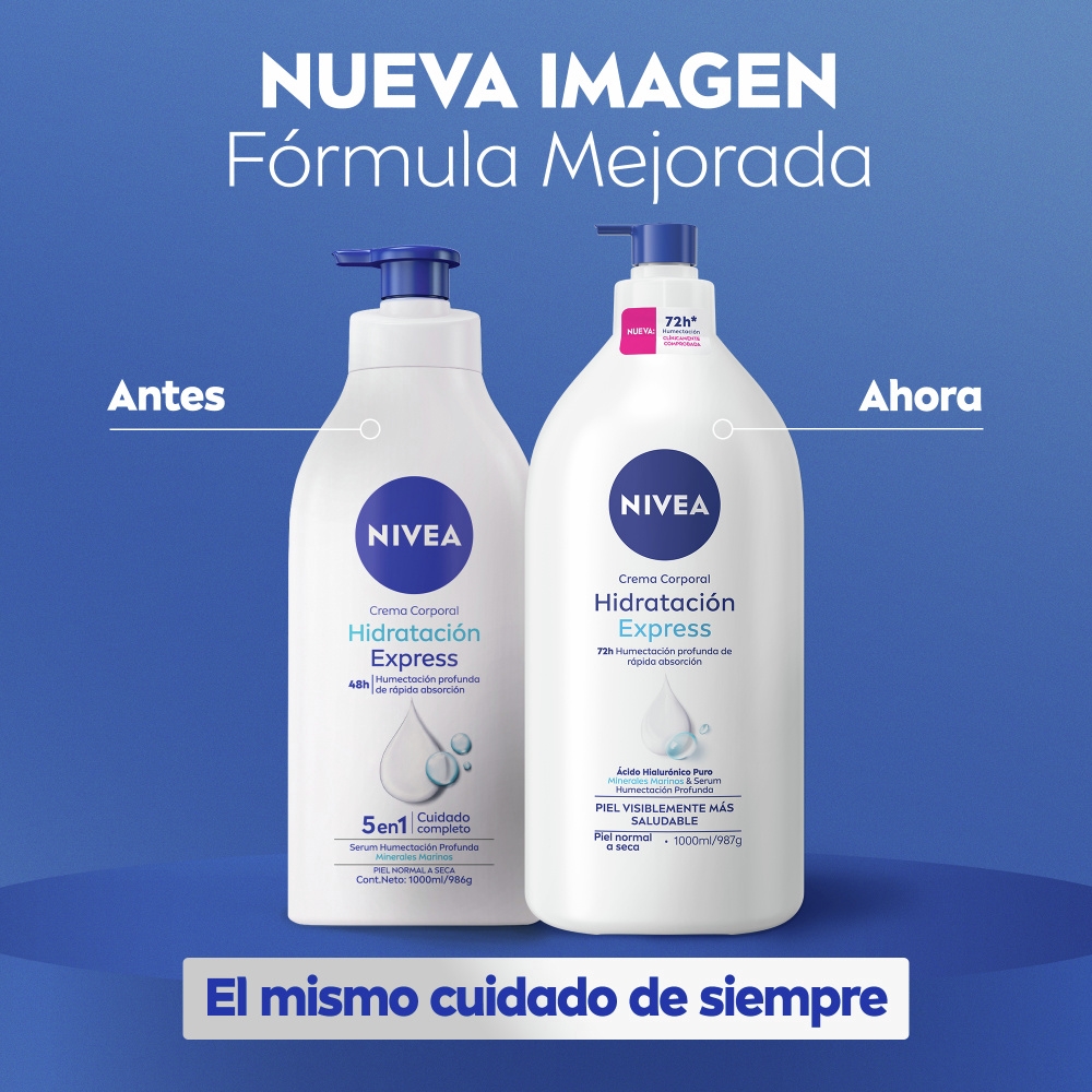 Fórmula mejorada. Piel Visiblemente más saludable con cada uso. Nutrición profunda por 72h*. Mantiene la hidratación. Para una piel notablemente suave y tersa. Enriquecida con Ácido Hialurónico Puro, Minerales Marinos & Serum de Humectación Profunda. Sin sensación grasosa y rápida absorción.