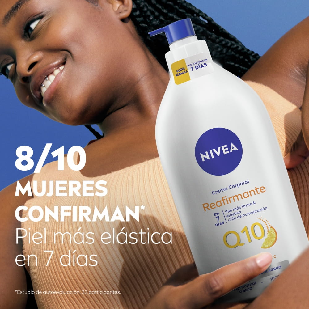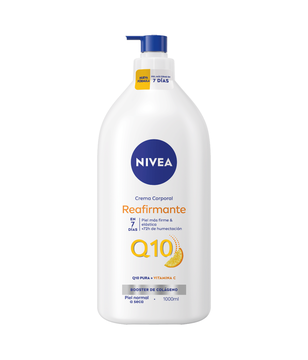 Prepárate para una piel más firme y elástica! La nueva fórmula reafirmante con Booster de Colágeno, contiene Q10 puro + Vitamina C para una piel visiblemente más firme y elástica en solo 7 días*, brindando humectación clínicamente probada por hasta 72horas**.