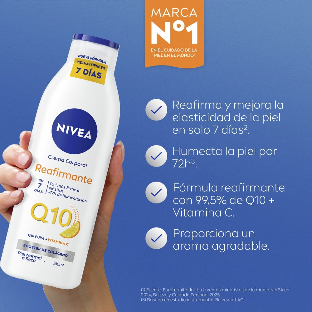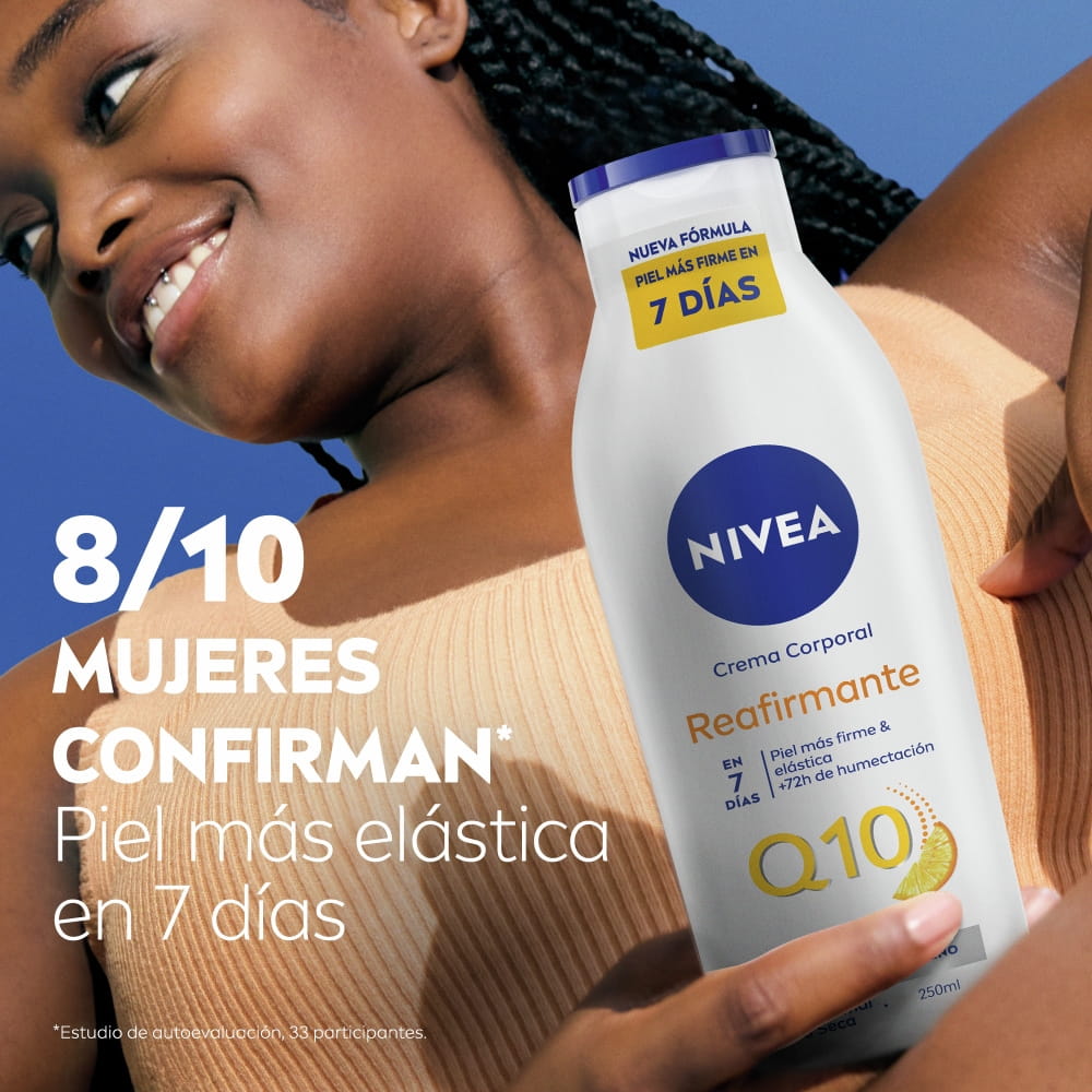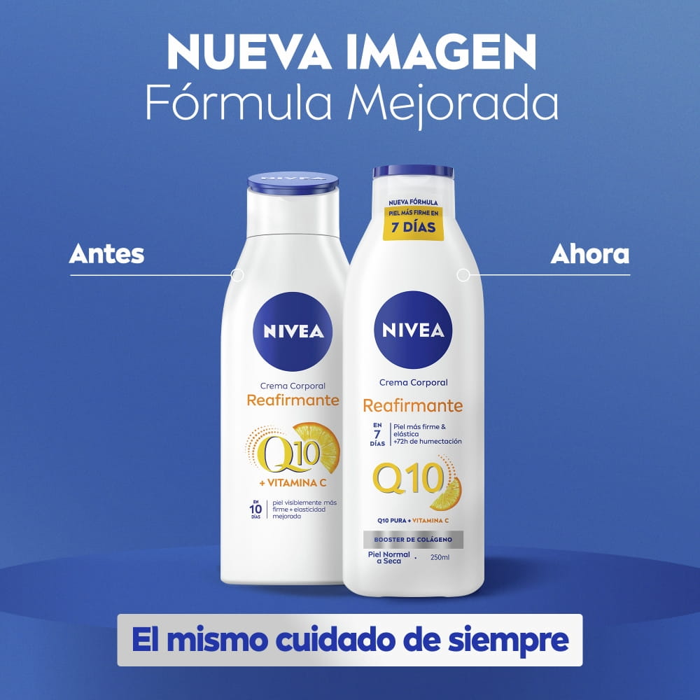 Prepárate para una piel más firme y elástica! La nueva fórmula reafirmante con Booster de Colágeno, contiene Q10 puro + Vitamina C para una piel visiblemente más firme y elástica en solo 7 días*, brindando humectación clínicamente probada por hasta 72horas**.
