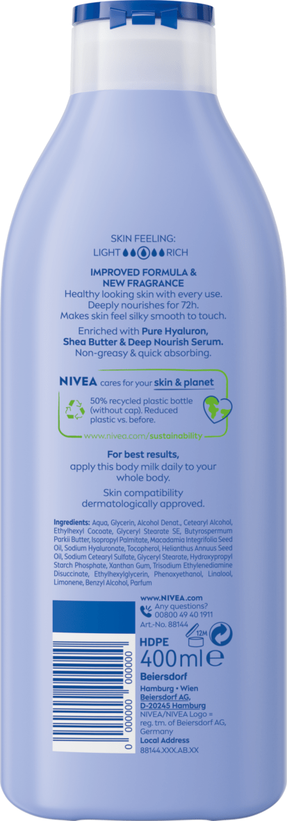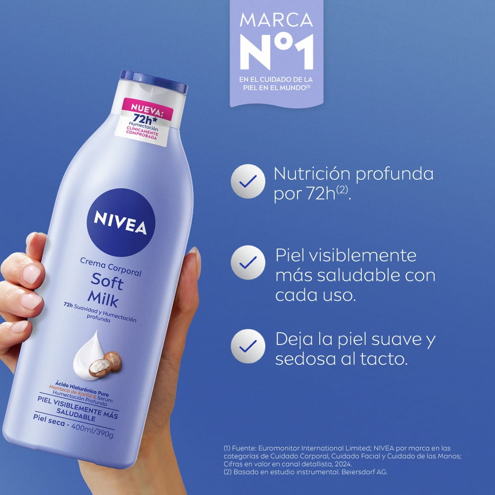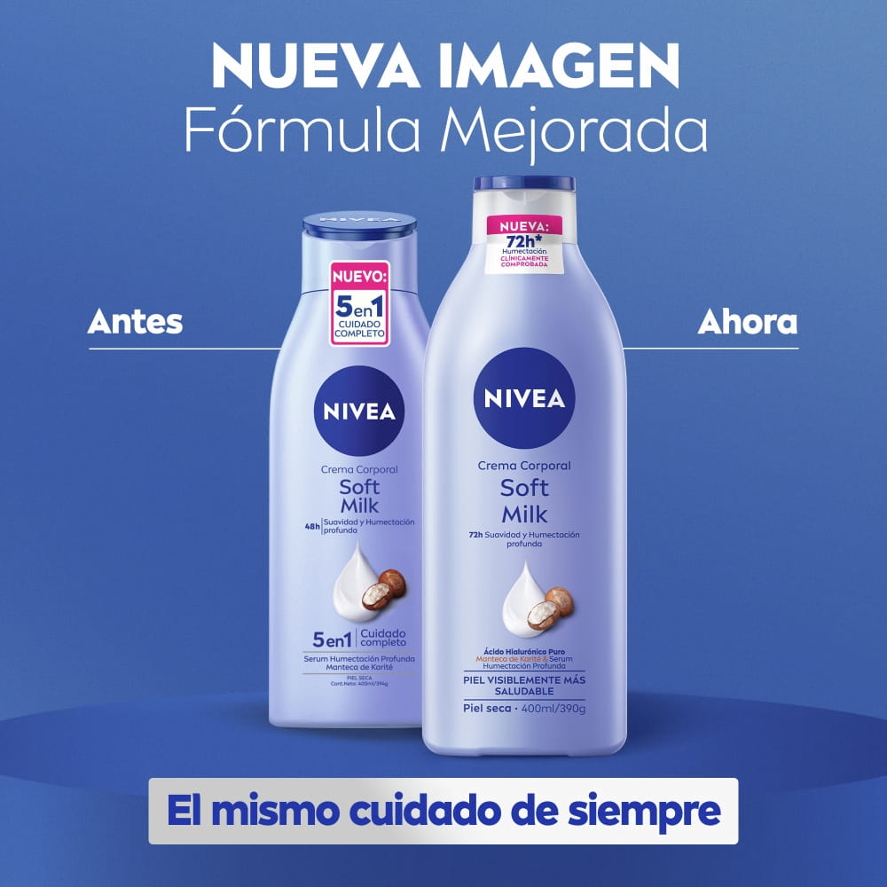 Fórmula mejorada. Piel Visiblemente más saludable con cada uso. Nutrición profunda por 72h*. Mantiene la hidratación. Para una piel notablemente suave y tersa. Enriquecida con Ácido Hialurónico Puro, Manteca de Kartié & Serum de Humectación Profunda. Sin sensación grasosa y rápida absorción.