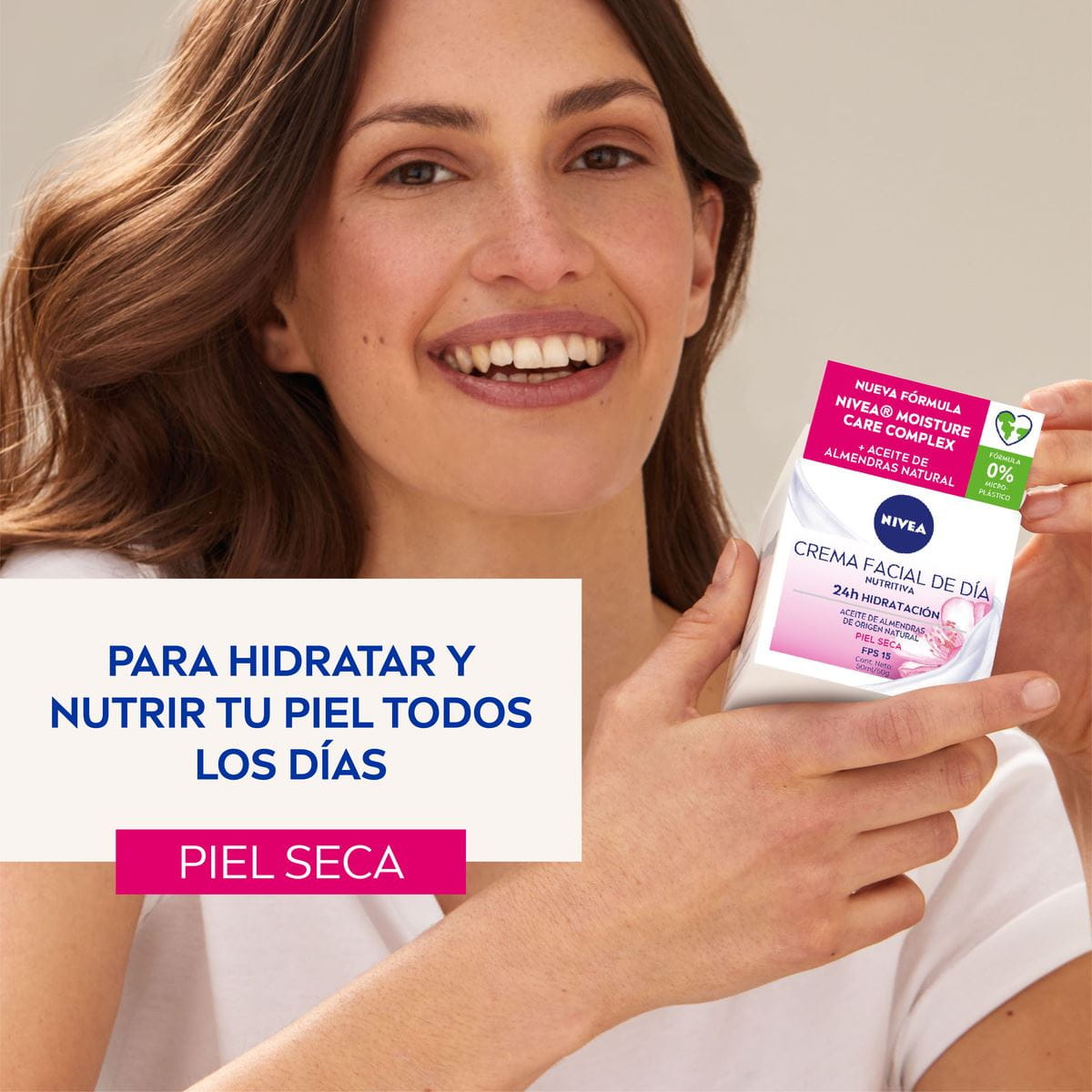 Esta crema de día ha sido desarrollada pensando en tu piel seca. Su fórmula con NIVEA Moisture Care Complex y Aceite de Almendra natural hidrata tu piel a la vez que la protege de las agresiones externas | 50ml