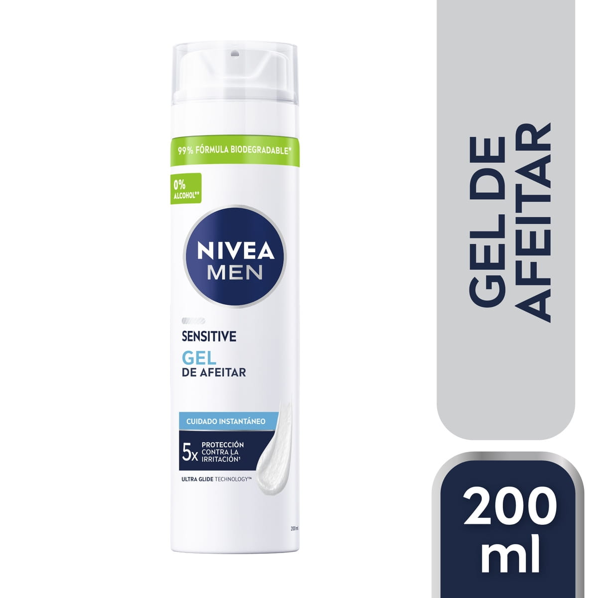 Gel de Afeitar NIVEA MEN Sensitive, con una fórmula 99% biodegradable y 0% alcohol, ofrece protección instantánea contra cinco signos de irritación por el afeitado. Enriquecido con Manzanilla, Pro-Vitamina B5 y Vitamina E, garantiza un afeitado suave y al ras mientras mantiene la piel cómoda y cuidada.