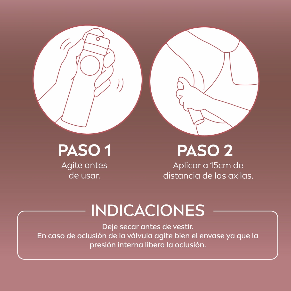 Advertencias: Aerosol extremadamente inflamable. Recipiente a presión. Proteger de los rayos solares y no exponer a temperaturas superiores a 50 °C. Puede explotar si se calienta. Mantener alejado del calor, superficies calientes, chispas, llamas u otras fuentes de ignición. No vaporizar hacia una llama o cuerpo incandescente. No perforar, ni quemar, incluso después de usado. Sólo entregar envases vacíos para ser reciclados. Evite el contacto con los ojos. Mantener fuera del alcance de los niños. No usar en piel irritada o lastimada. Usar sólo en las axilas. Si observa alguna reacción desfavorable suspenda su uso; en caso de que persista consulte a su médico. Este producto no está formulado para su uso en niños. No inhale directamente el contenido. Conservar en lugar fresco y oscuro. No contiene CFC. No daña la capa de ozono.