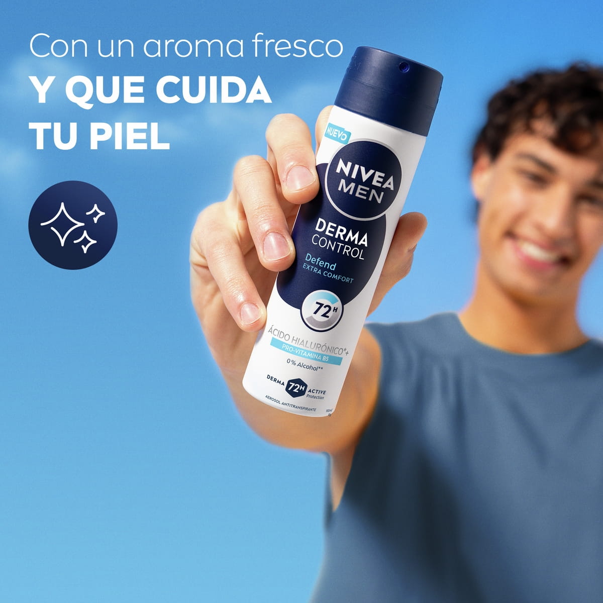 NIVEA MEN Derma Control Defend proporciona una sensación de confort extra con protección antitranspirante confiable de 72 h. Su fórmula avanzada con Ácido Hialurónico Puro y Pro-Vitamina B5 fortalece la piel y ayuda a proteger contra la irritación, mientras cuida la piel.