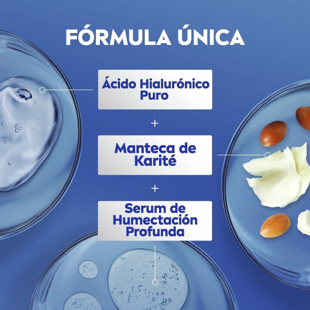 Fórmula mejorada. Piel Visiblemente más saludable con cada uso. Nutrición profunda por 72h*. Mantiene la hidratación. Para una piel notablemente suave y tersa. Enriquecida con Ácido Hialurónico Puro, Manteca de Kartié & Serum de Humectación Profunda. Sin sensación grasosa y rápida absorción.