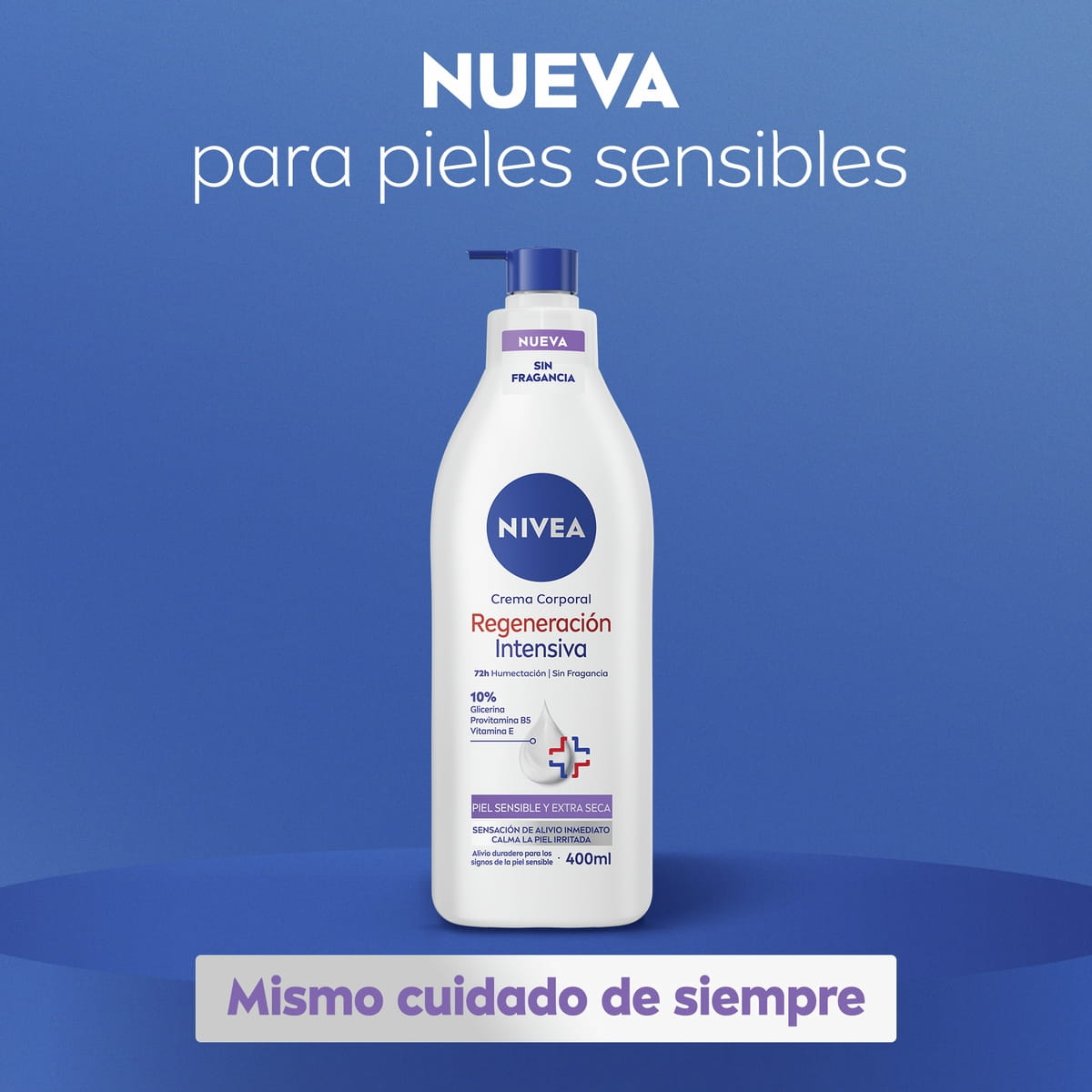Descubre NIVEA para Piel Sensible y Extra Seca, la solución para calmar la piel sensible. Su fórmula sin fragancia con 10% de complejo de Glicerina, Provitamina B5 y Vitamina E calma inmediatamente la piel irritada y la mantiene profundamente hidratada durante 72h*. Con el uso regular, ayuda a prevenir irritaciones en la piel sensible y extra seca, como la tirantez o la picazón.
